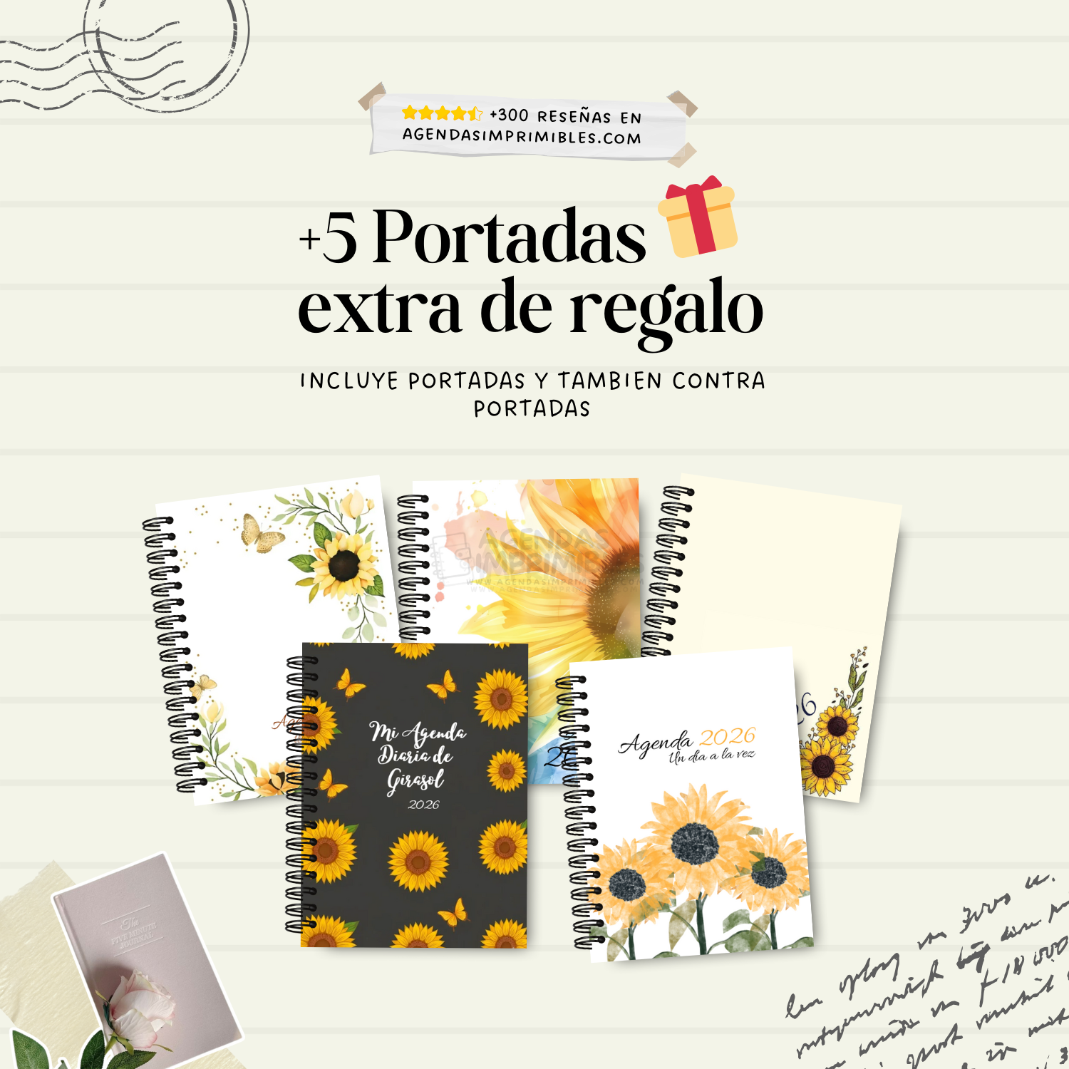 Puedes personalizarla fácilmente en Canva y adaptarla a tu estilo. Además, tendrás acceso permanente a los archivos y recibirás +5 portadas extra de regalo, para que tu agenda se vea única en cada ocasión.