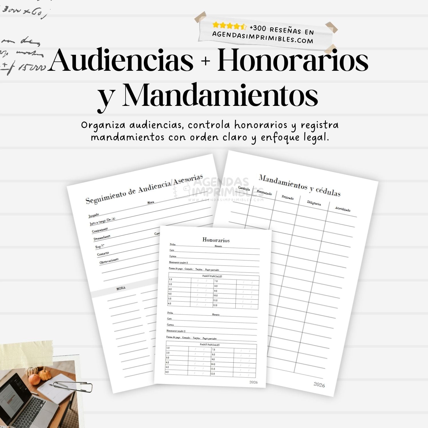 La Agenda Jurídica Semanal 2026 es un planificador digital profesional diseñado para abogados, despachos y estudiantes de derecho. Incluye calendario anual, planificación por horas, bitácoras de expedientes y audiencias, control de clientes, finanzas mensuales y más. Con 452 hojas (904 páginas) en PDF editable o listo para imprimir, te permite llevar un control riguroso de tus casos y optimizar tu tiempo con estructura clara y enfoque legal.