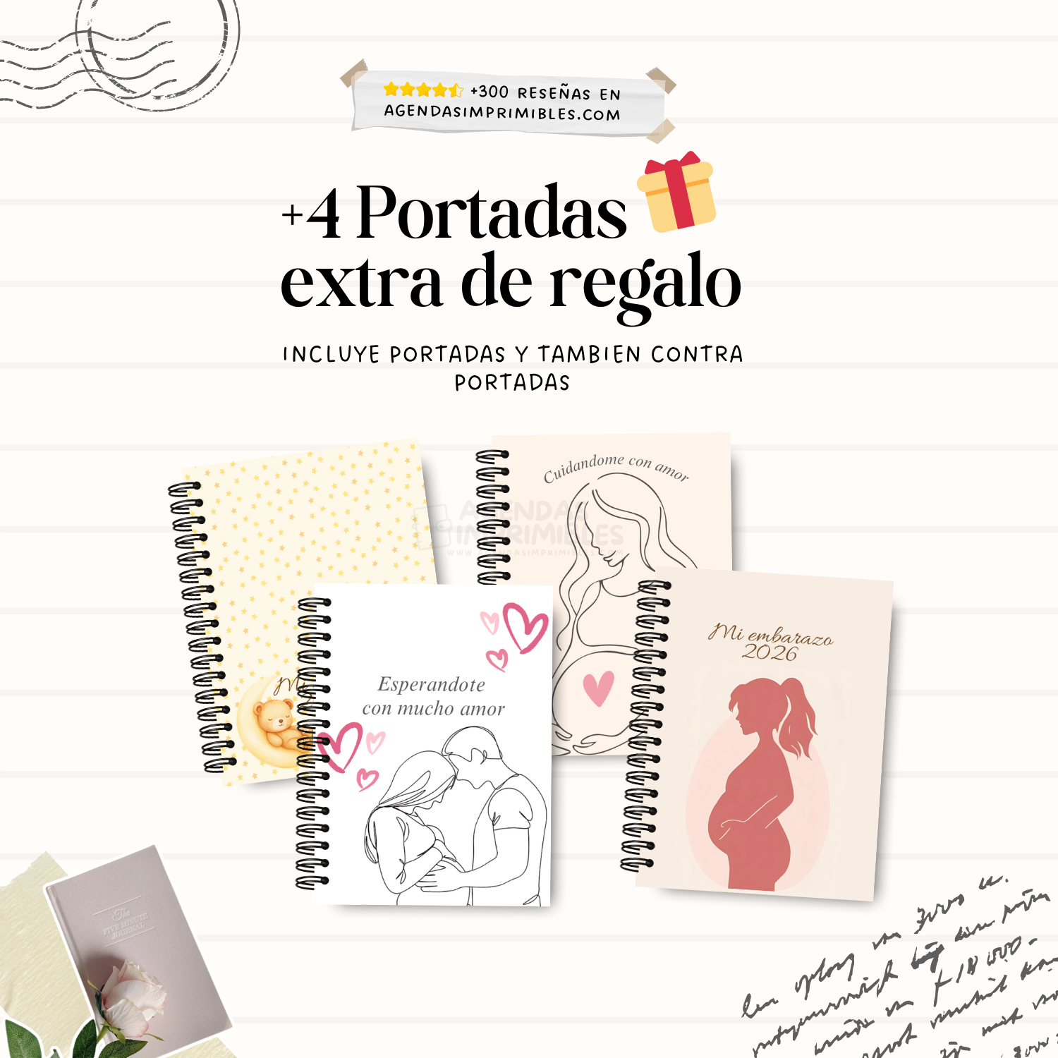 Además, recibe +5 portadas de regalo y el archivo 100% editable en Canva para personalizar cada detalle. Con 190 páginas en formato A4 y A5, es la herramienta perfecta para llevar un seguimiento de tu embarazo de forma organizada.