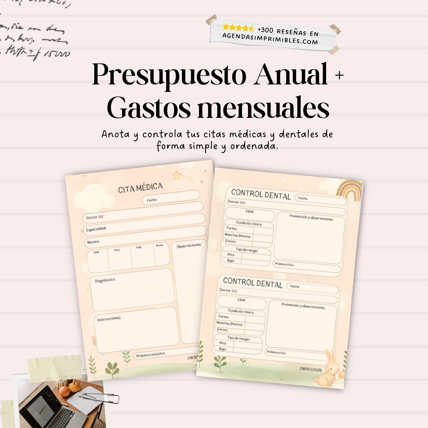 La Agenda Pediátrica 2 Días x Hoja 2026 es un planificador digital en español diseñado especialmente para madres, padres o cuidadores que desean llevar un registro detallado del desarrollo de sus pequeños. Incluye calendarios mensuales, control nutricional, citas médicas, bitácoras, registro de datos importantes, gastos mensuales y planificadores diarios. Viene en formato PDF para imprimir en tamaño A4 y A5, y también es 100% editable en Canva. Ideal para acompañar cada etapa del crecimiento infantil con organización, ternura y practicidad.