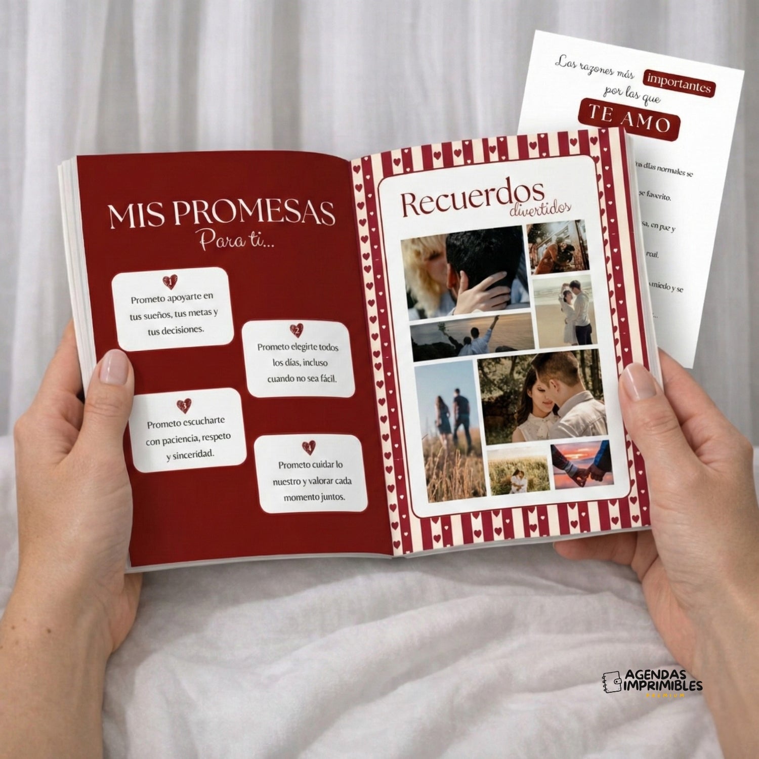 No es un detalle comprado al azar. Es un diario creado para guardar su historia, imprimirla y convertirla en un recuerdo físico que se queda con ustedes.