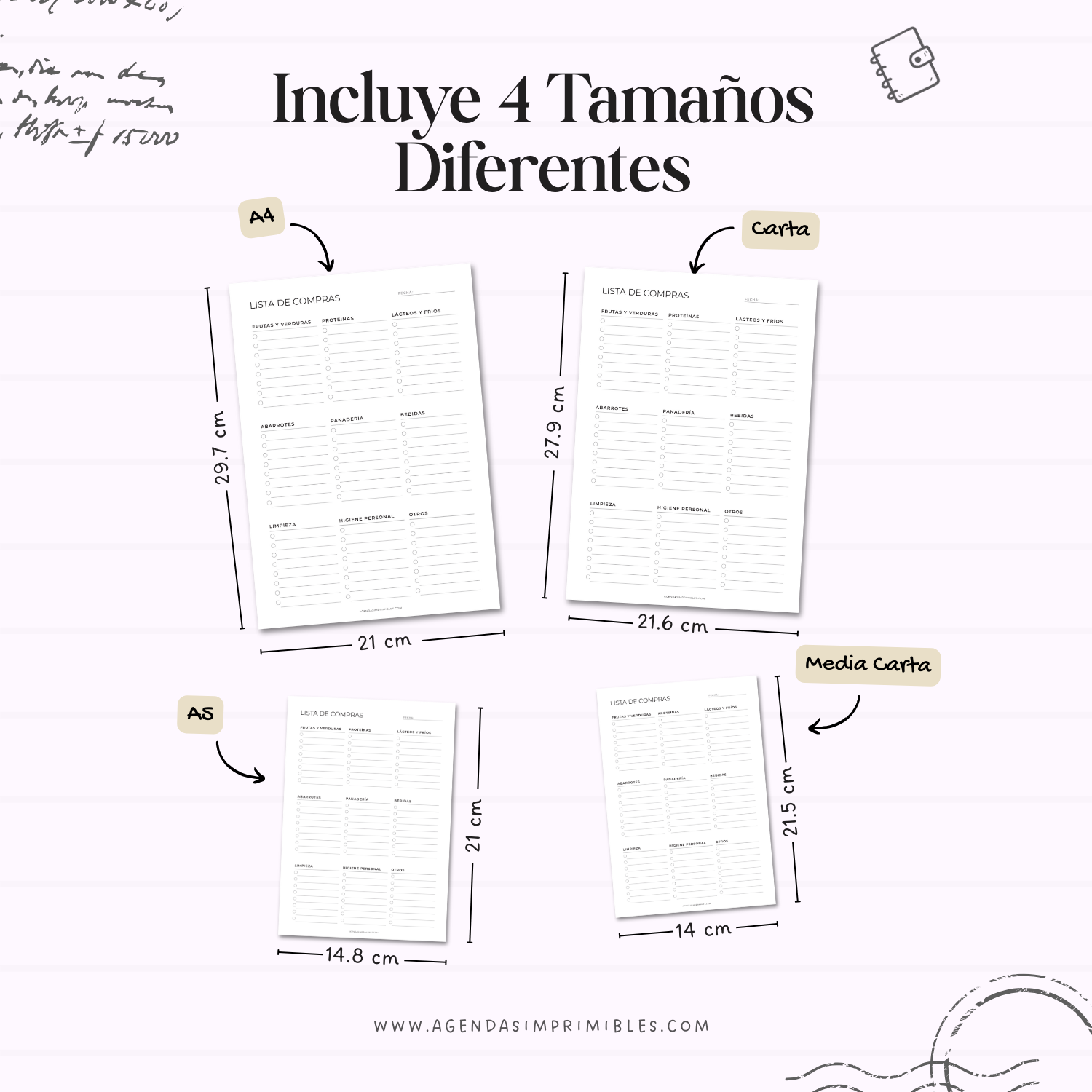• Tamaños adaptables a distintos formatos de agenda o carpeta.