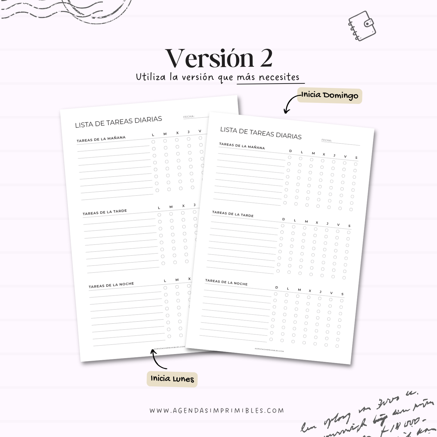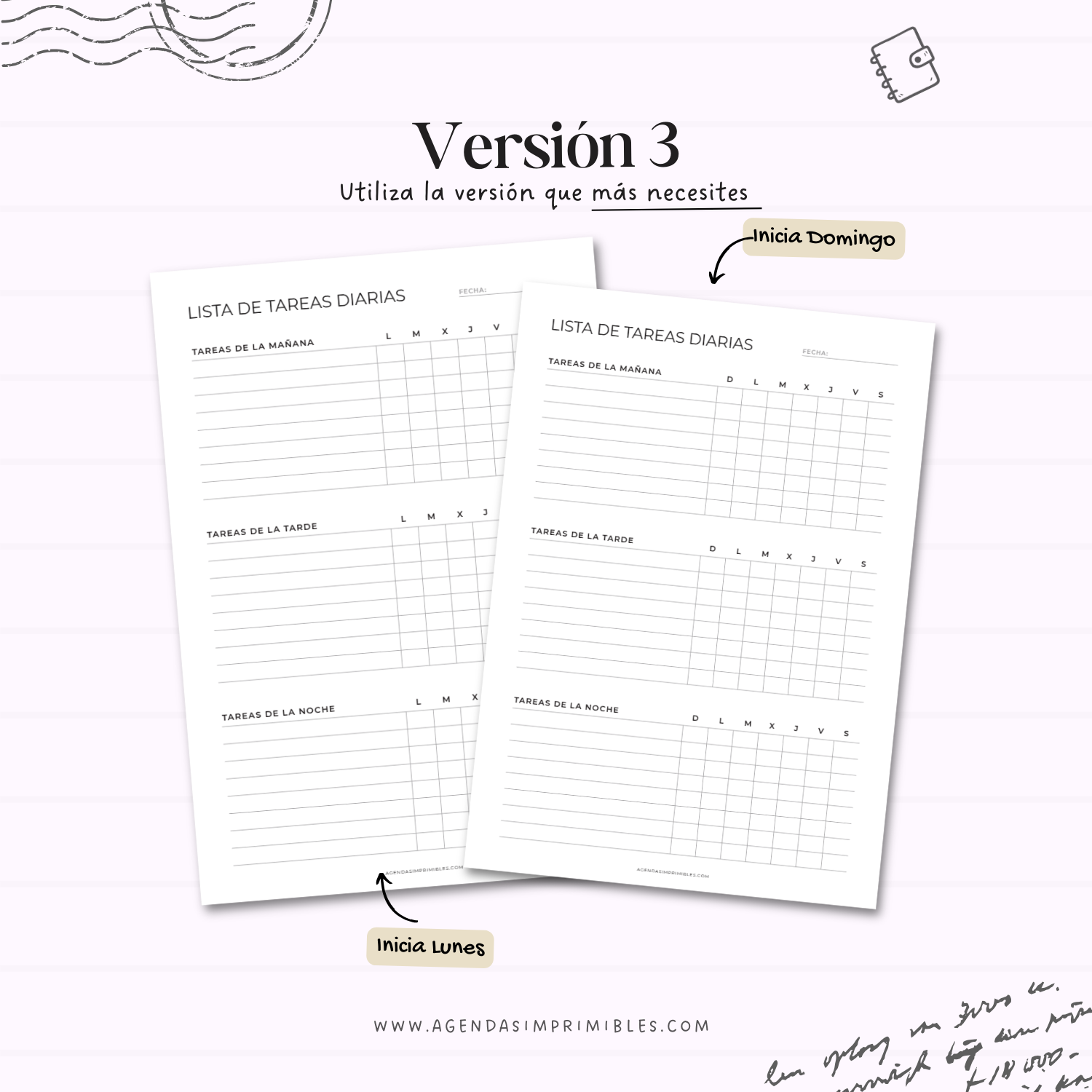 • 3 versiones diferentes para que elijas la que mejor se adapte a tu estilo de organización.